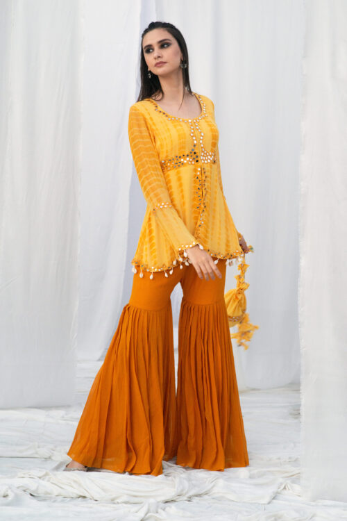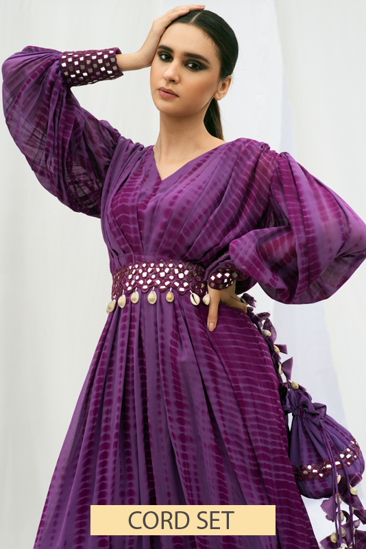 Smart and Fashionable Kaftan accentuated with a heavy belt with detailed mirror work.