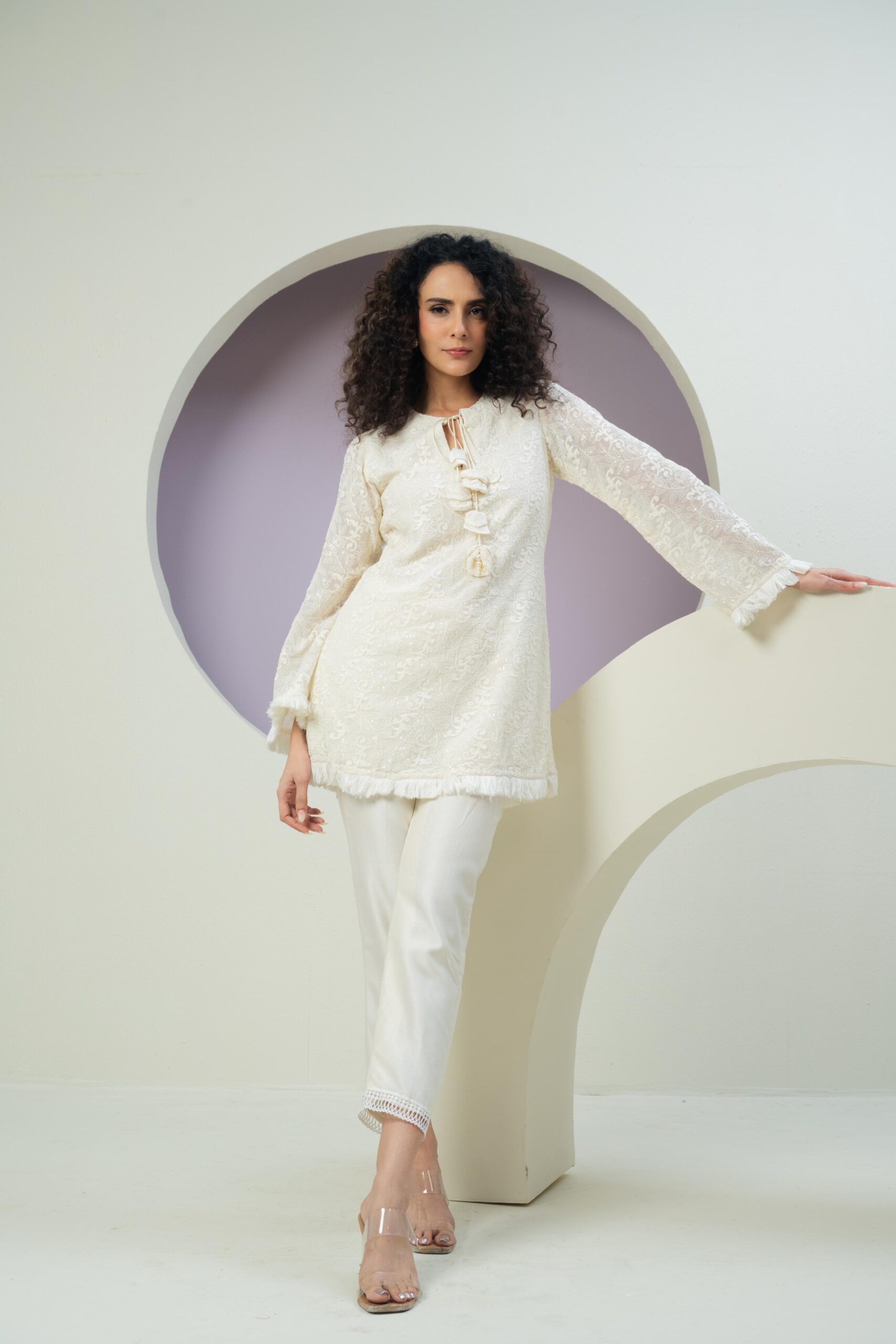 PURE ORGANZA COORDINATE SETS WITH SEQUENCE WORK WITH PURE CHANDERI SILK STRAIGHT PANTS
