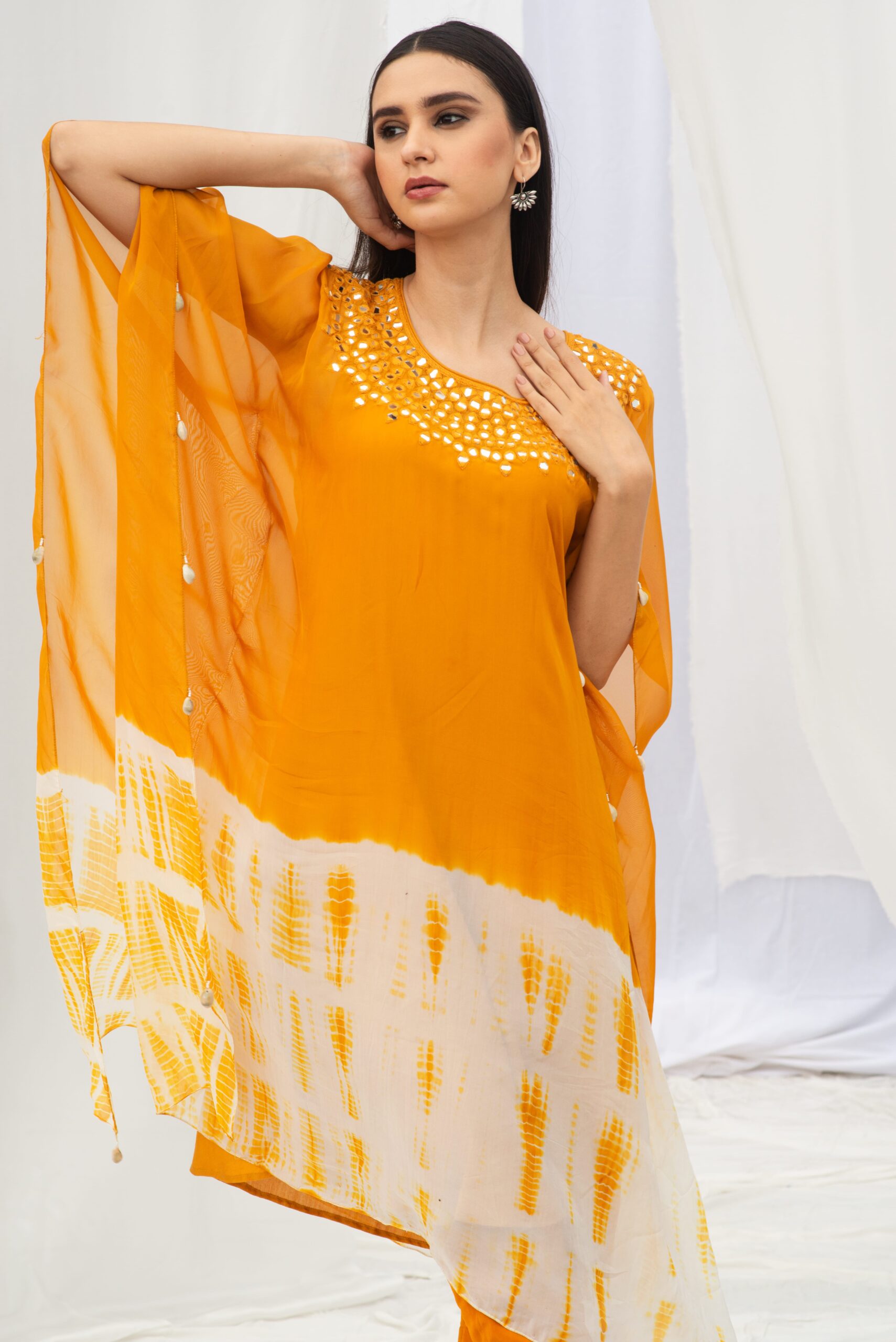 EMBROIDERY/PRINT : HAND DYED WITH MIRROR WORK EMBROIDERY